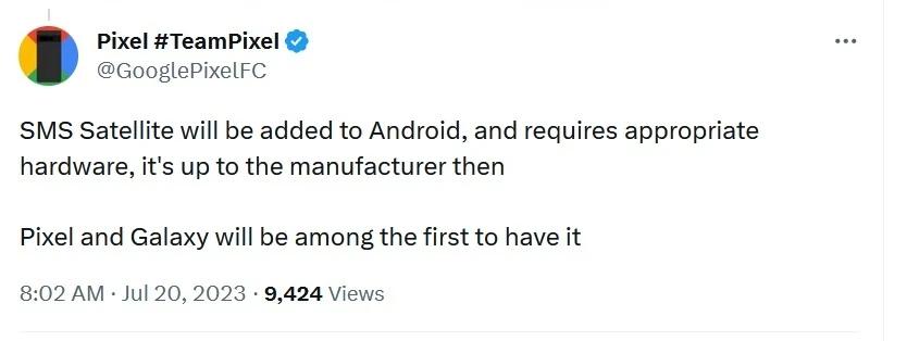 Secondo un tweet dell’account #TeamPixel (via Wccftech), Android 14 offrirà gli SMS via satellite come caratteristica nativa per gli smartphone che saranno in grado di supportarla. Si sottolinea che #TeamPixel è un fan club di Pixel e non è affiliato a Google.