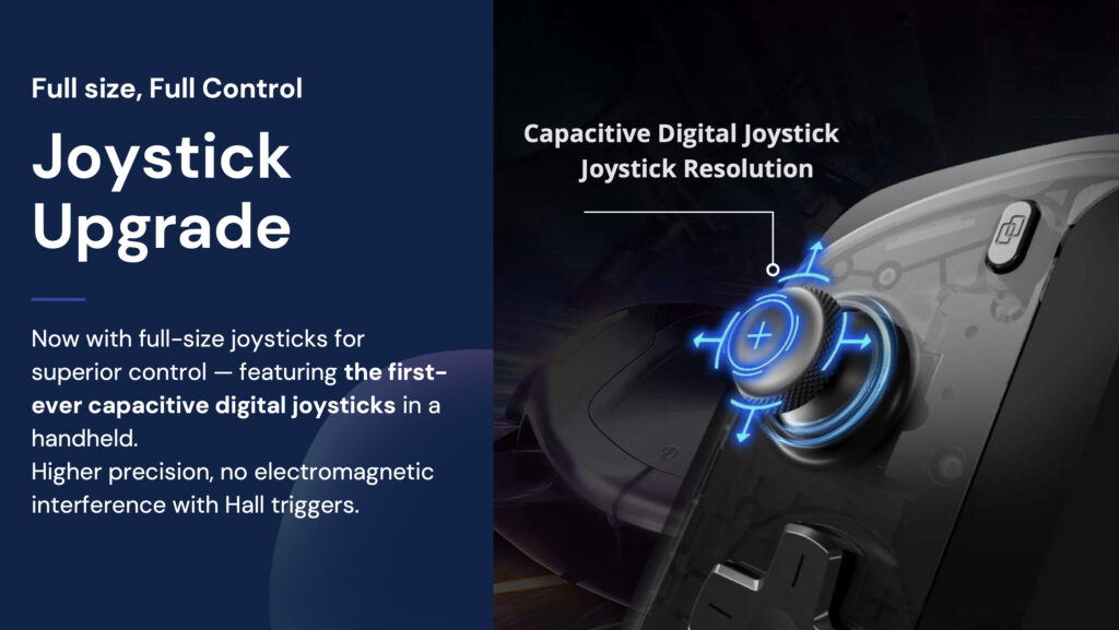Le novità non si fermano al processore. abxylute One Pro introduce miglioramenti anche nel sistema di controllo, dato che arriveranno per la prima volta joystick analogici capacitivi digitali di dimensioni standard (e non ridotte come la prima One), progettati per offrire una precisione superiore e privi di interferenze elettromagnetiche grazie all’abbinamento con i grilletti Hall Effect (tecnologia già presente nel modello base).