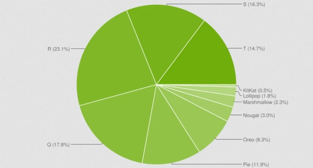 Tuttavia, la versione di Android più diffusa tra i dispositivi è ancora Android 11, risalente al 2020, che si trova sul 23,1% dei dispositivi. Android 10, rilasciato nel 2019, è presente sul 17,8% dei dispositivi, mentre Android 12 del 2021 si trova sul 16,3% dei dispositivi, seguito appunto da Android 13.