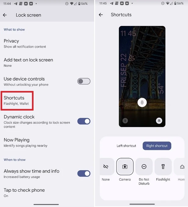 Sul Pixel, la schermata di blocco presenta due scorciatoiem una in basso a sinistra ed un’altra a destra. Quella a sinistra accende la torcia quando viene premuta, mentre quella a destra apre l’app Wallet, utilizzata per determinare quale carta di pagamento sarà utilizzata con Google Pay. Fino ad ora, queste scorciatoie non potevano essere modificate, ma con Android 14, avrete la possibilità di cambiarne una, nessuna o entrambe.
