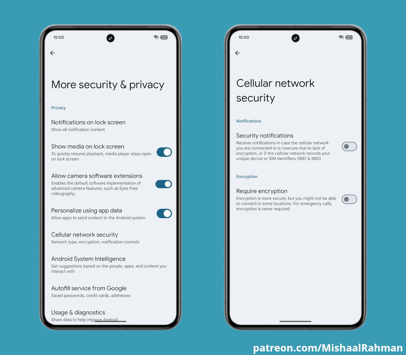 Su Android 15 sarà possibile anche scegliere delle impostazioni avanzate sotto la voce “Cellular network security”, per avere un controllo più granulare su cosa far passare o meno tramite rete cellulare.