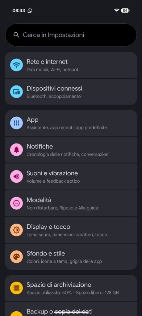 Le impostazioni sono state riorganizzate ma soprattutto codificate per colore, con ad esempio i settaggi per l’audio in rosso, per la connettività in azzurro ecc.