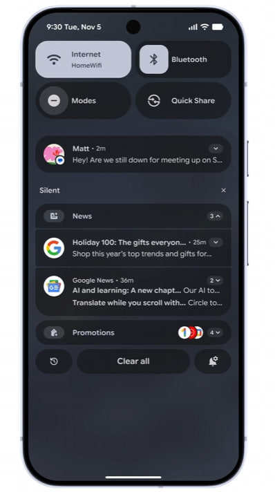 L’organizzazione intelligente prosegue con un sistema che raggruppa e silenzia in autonomia le notifiche di bassa priorità come offerte commerciali o avvisi social secondari. Il telefono impara a riconoscere ciò che conta davvero e nasconde il rumore di fondo per favorire la concentrazione. Questa pulizia visiva aiuta a mantenere il focus sulle attività lavorative o personali urgenti ed elimina le distrazioni continue dalla barra di stato.