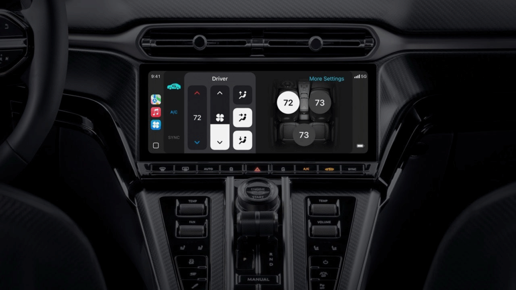 CarPlay Ultra non si limita a rinnovare l’estetica: consente all’iPhone di gestire non solo il display centrale, ma anche il cruscotto digitale e altri schermi rivolti al conducente, mostrando informazioni come pressione delle gomme, livello del carburante e funzioni di assistenza alla guida.