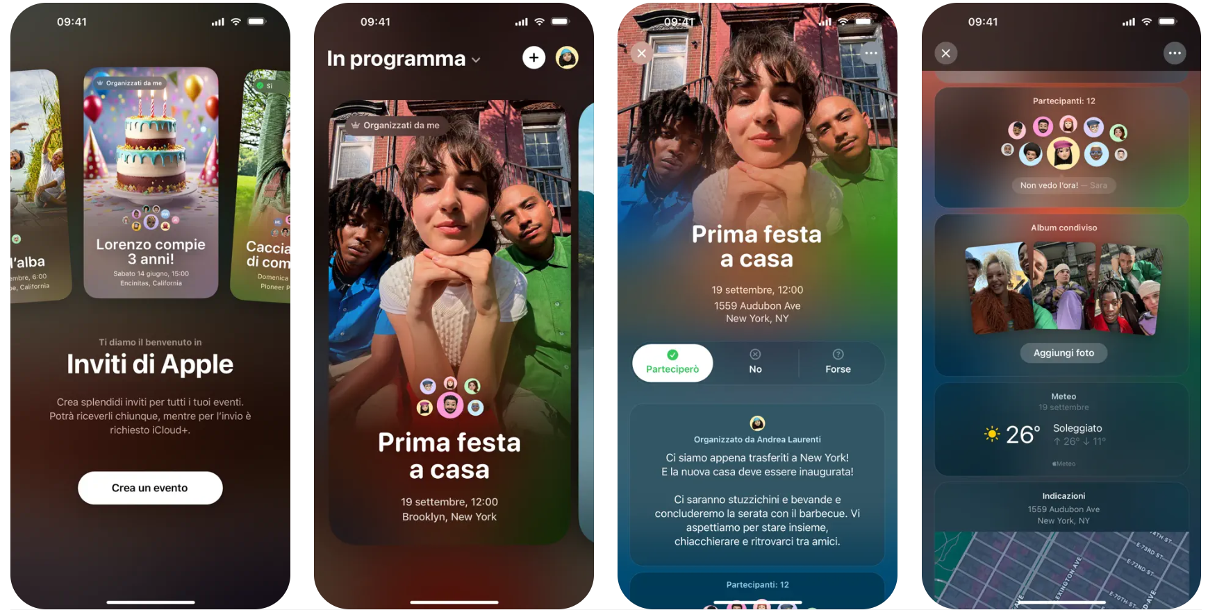 Chi riceve un invito può confermare la partecipazione direttamente nell’app, mentre gli organizzatori possono monitorare le risposte e persino creare una colonna sonora collaborativa con Apple Music. Dopo l’evento, un album condiviso raccoglie foto e video di tutti i partecipanti, funzione che personalmente riteniamo la più interessante.