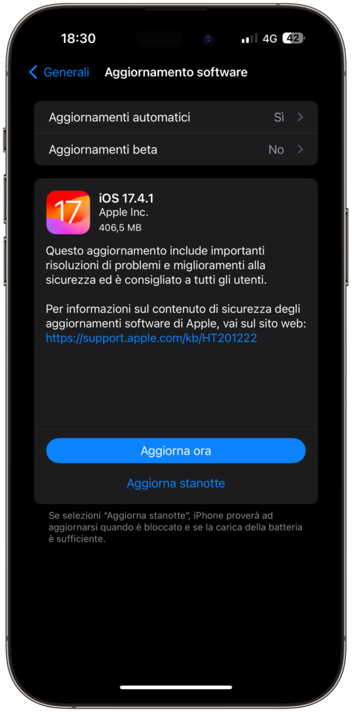 Dopo l’anticipazione di qualche giorno fa, vi confermiamo che Apple ha appena rilasciato iOS 17.4.1. Si tratta di una versione minore, di un aggiornamento che porta quindi solo bug fix e miglioramenti alla sicurezza dei dispositivi.