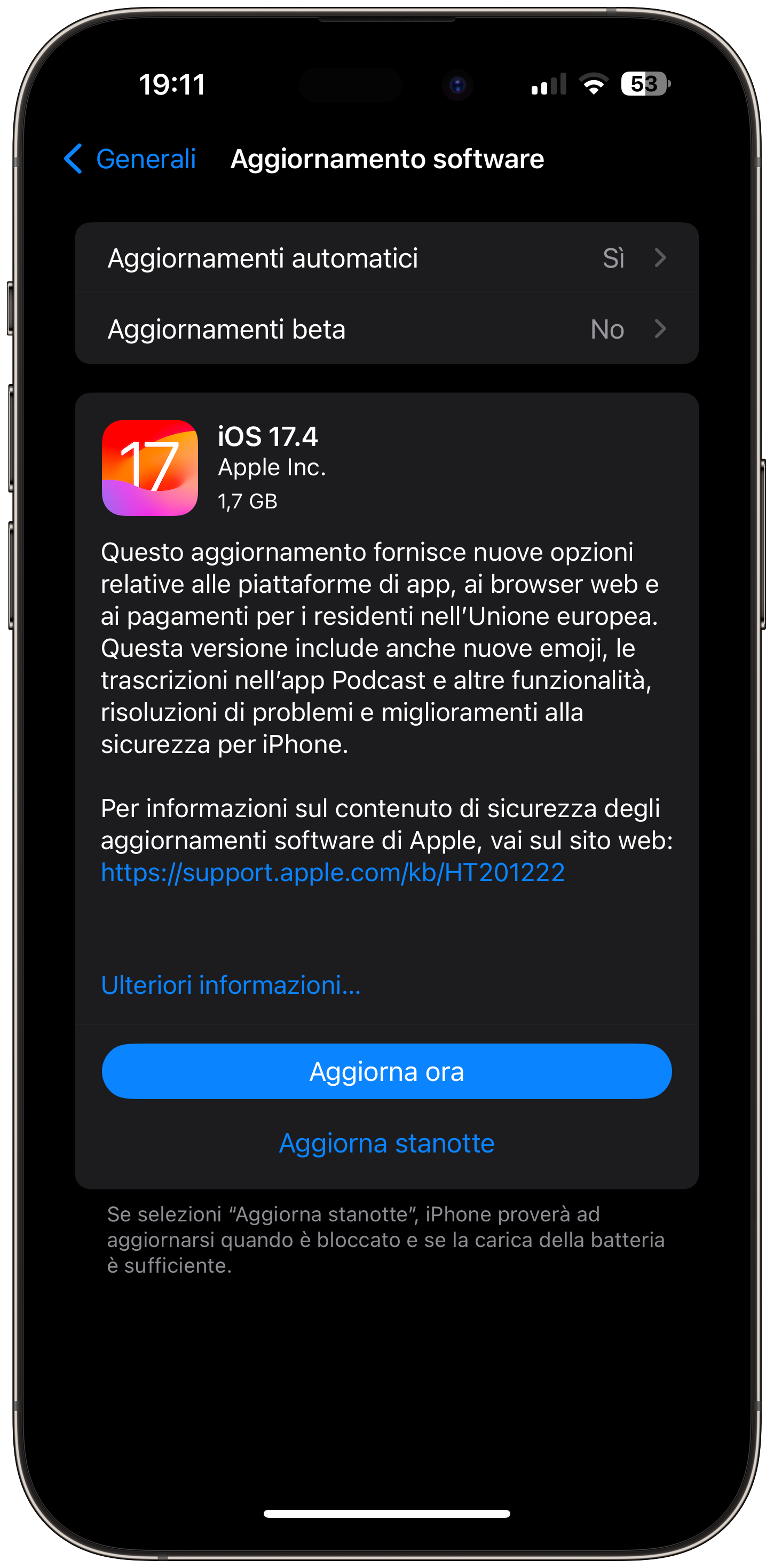 Sarà quindi possibile, da oggi, installare applicazioni da piattaforme alternative, scegliere un browser web con motore di rendering diverso da webkit ed impostarlo come app di default, utilizzare opzioni di pagamento alternative diverse da Apple Pay… insomma, un aggiornamento tutto alternativo, questo iOS 17.4.