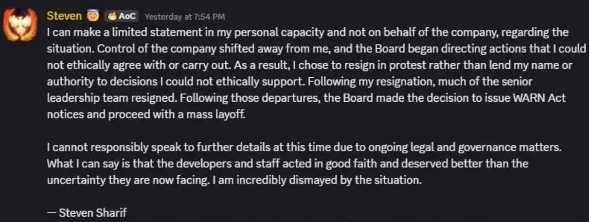 Steven Sharif ha rilasciato una dichiarazione surreale, annunciando le sue dimissioni e incolpando il “Consiglio di Amministrazione” per aver preso decisioni non etiche e aver bloccato i fondi, costringendolo ad abbandonare la nave. La beffa? I documenti societari confermano che il Consiglio di Amministrazione era composto essenzialmente da due persone: Steven Sharif stesso e il suo socio fondatore.