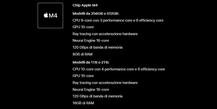 Spulciando sul sito Apple, infatti, possiamo notare come due dettagli cambiano in base al modello scelto. Se scegliete infatti quello da 256 GB o da 512 GB, avrete a bordo 8 GB di RAM, mentre se optate per 1 o 2 TB la RAM raddoppierà, e ne avrete a disposizione ben 16 GB.