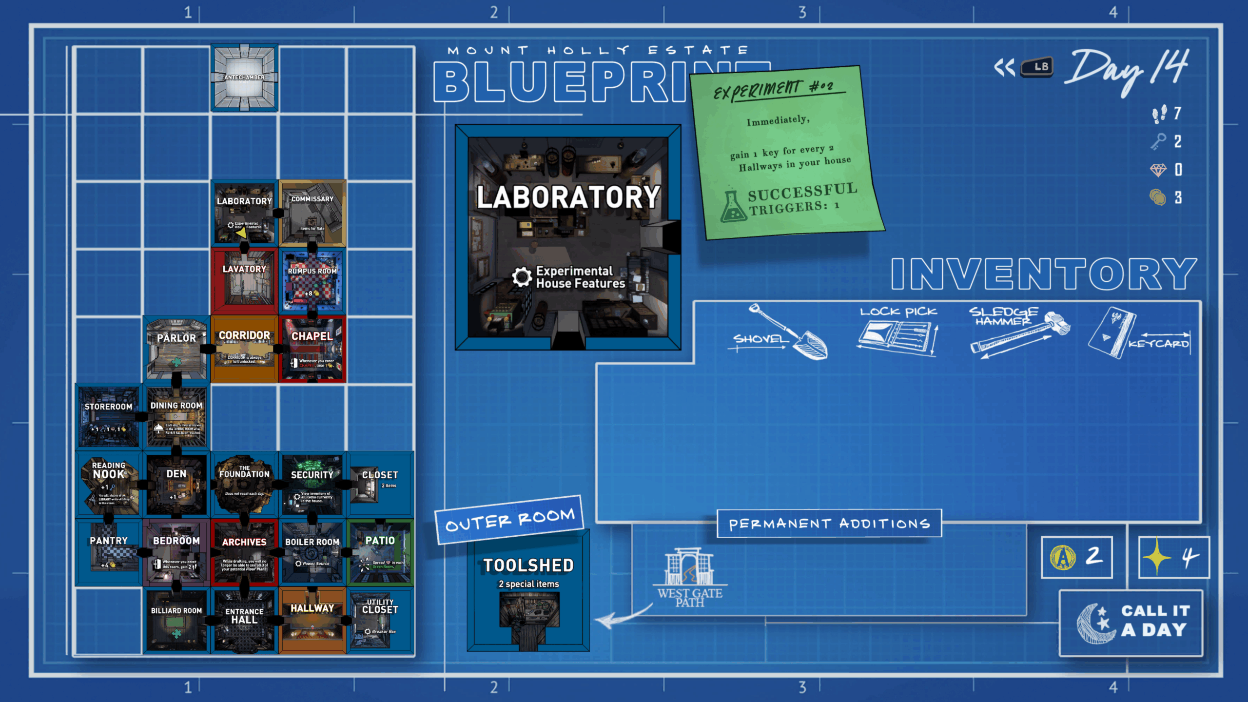 Qui arriva il genio: Blue Prince è un roguelike, ma non nel senso frenetico a cui siamo abituati. Avete un numero limitato di passi (la vostra energia) da spendere ogni giorno virtuale. Quando i passi finiscono, la giornata termina e la casa si resetta. Svanisce tutto. Il giorno dopo ripartite dall’ingresso, con una planimetria vuota e nuove carte in mano.