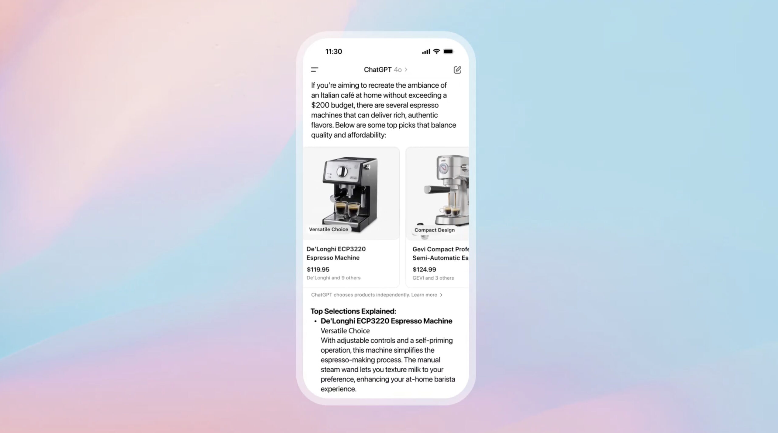 We’re experimenting with making shopping simpler and faster to find, compare, and buy products in ChatGPT.
