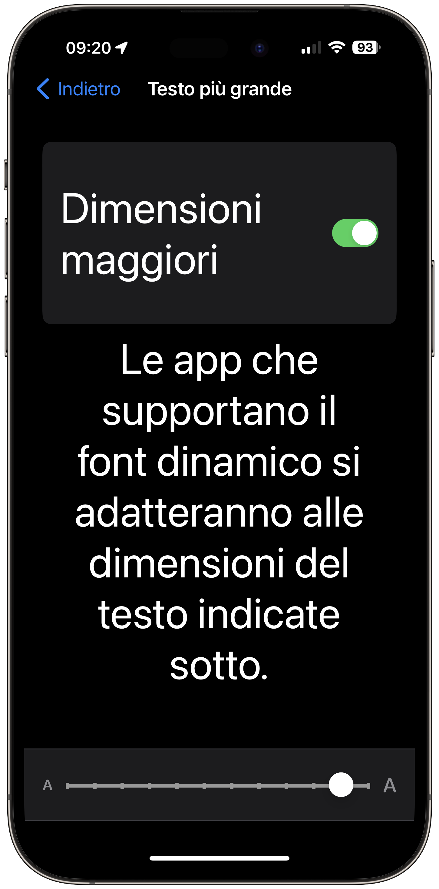 Una di queste, molto importante, concerne la possibilità di aumentare o diminuire la grandezza dei testi a livello di sistema operativo, con impatto globale su tutta l’interfaccia del nostro iPhone.