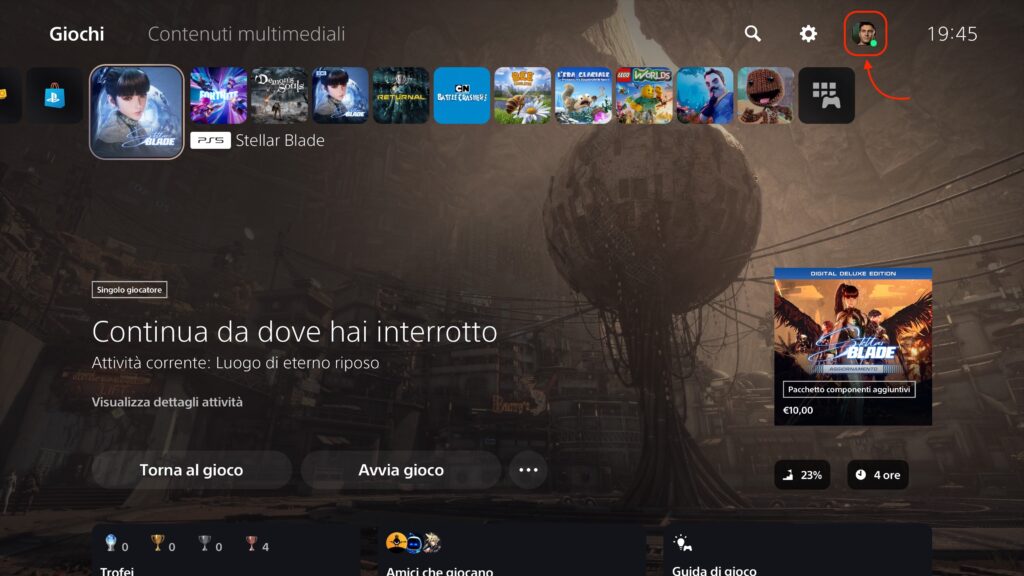 - Mettete in pausa qualsiasi vostra attività, e tornate alla homepage della vostra PlayStation 5 con il tasto PS sul vostro controller.