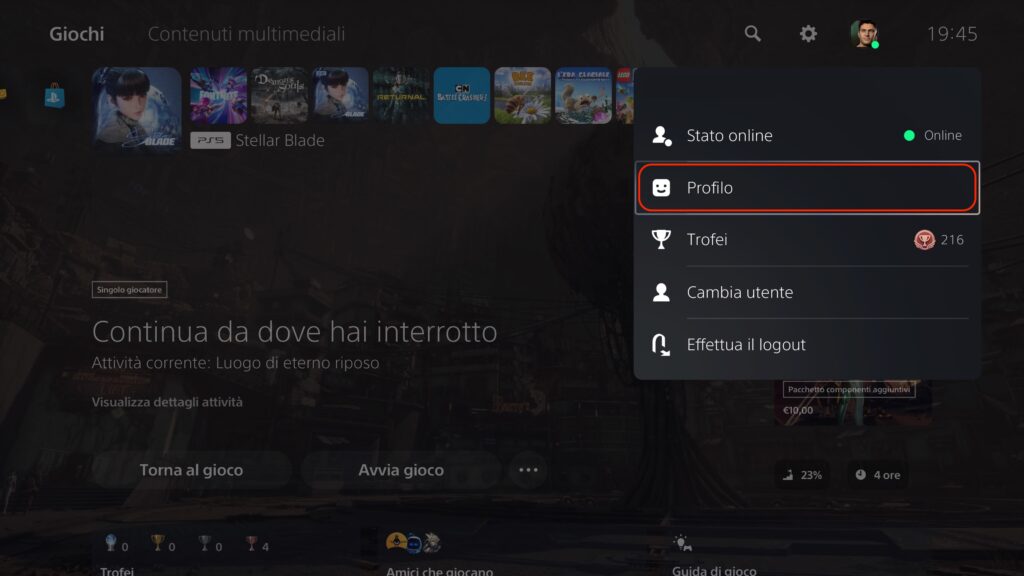 - Vi comparirà un menu contestuale, dal quale dovrete scegliere l’opzione Profilo.