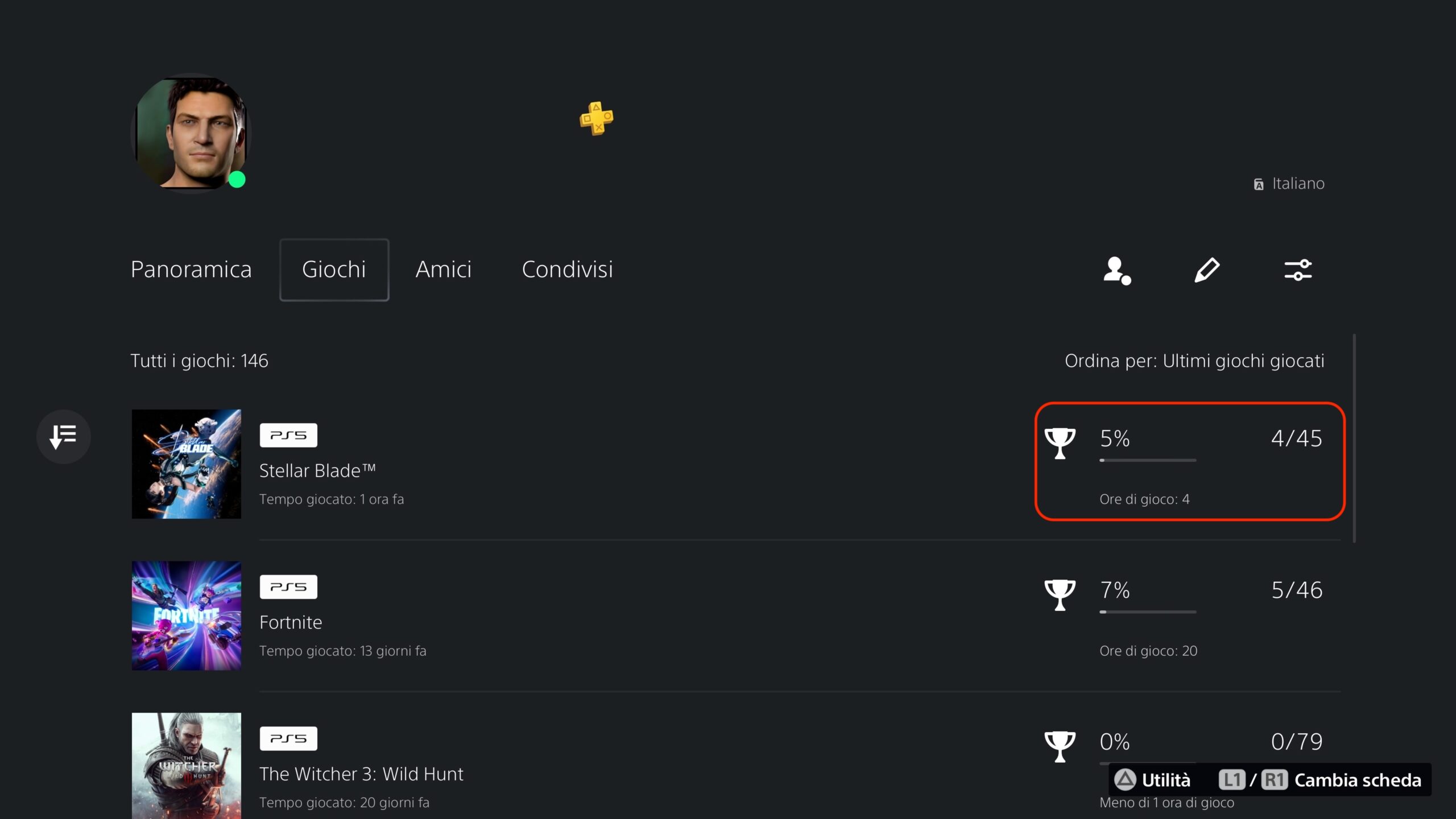 - A questo punto avrete già fatto. Nella schermata che si aprirà, infatti, avrete accesso all’elenco degli ultimi giochi avviati, comprensivi di numero trofei sbloccati e soprattutto ore di gioco complessive.