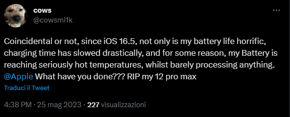 La preoccupazione degli utenti è comprensibile, considerando le molte lamentele che sono apparse sui social media in seguito all’aggiornamento a iOS 16.5. Utenti come @Ismascarade e @cowsmi1k su Twitter hanno espresso la loro frustrazione per la diminuzione della durata della batteria, l’aumento dei tempi di ricarica e l’eccessivo surriscaldamento del dispositivo.
