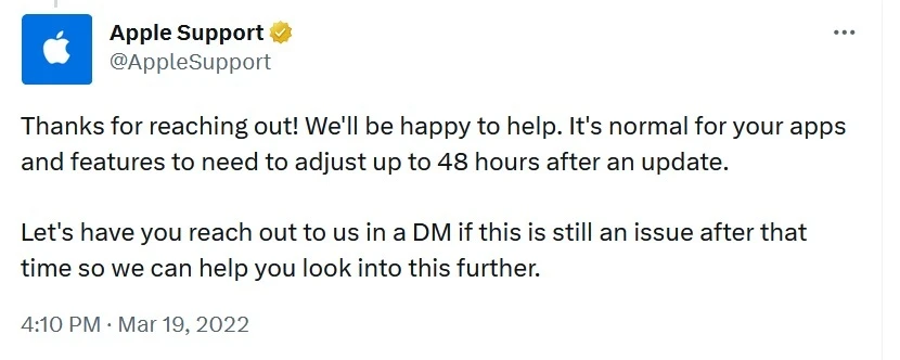 Apple ha consigliato agli utenti di aspettare almeno 48 ore dopo l’installazione di un nuovo aggiornamento prima di valutare l’effetto sulla durata della batteria. Questo periodo di tempo dovrebbe permettere al sistema di stabilizzarsi e ai vari algoritmi di ottimizzazione della batteria di tornare a funzionare correttamente. Questa informazione è stata condivisa anche da Apple Support in un tweet dello scorso anno.