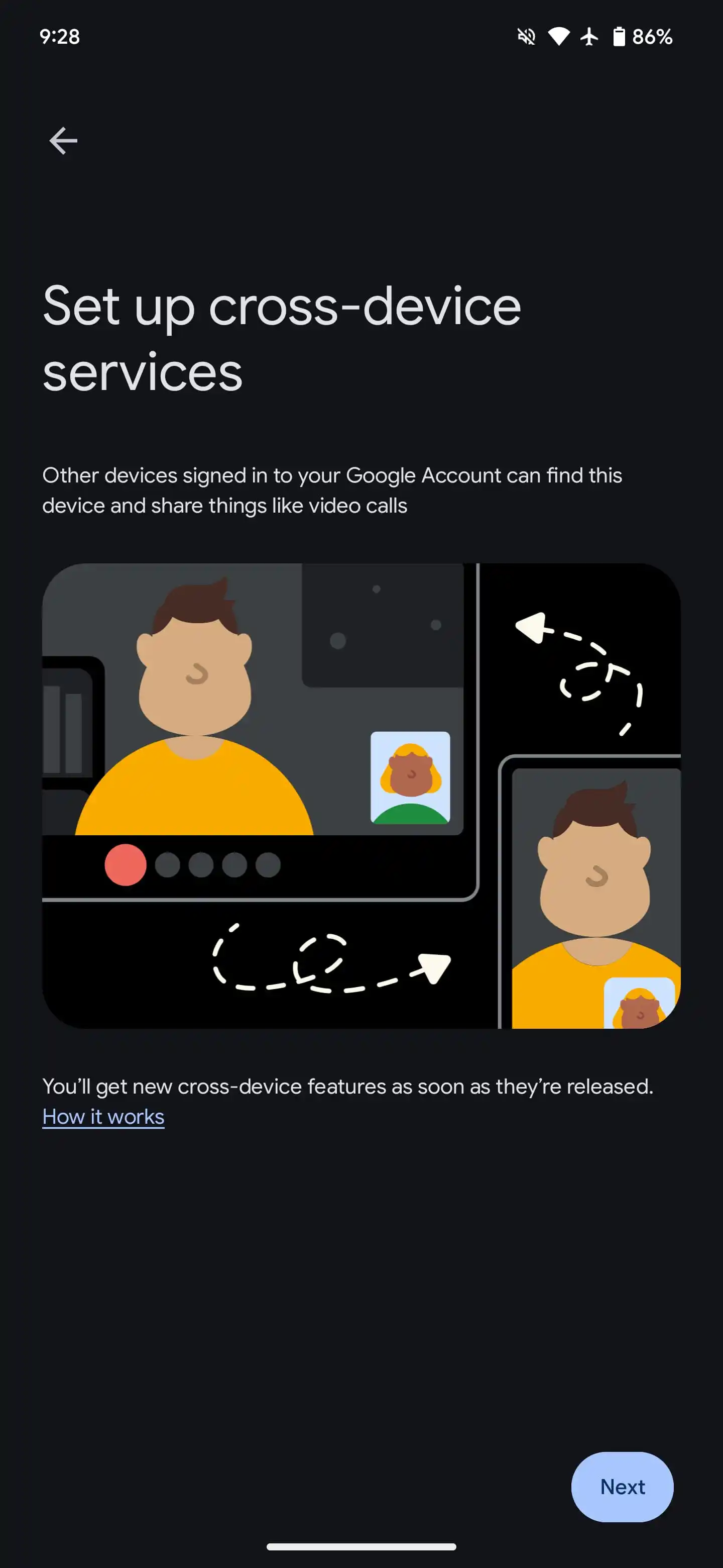 Attivabili (se vi sono già arrivate) tramite il menu impostazioni -> google -> dispositivi e condivisione -> cross device services, si verrà introdotti alla configurazione che prevede la creazione di un gruppo di dispositivi sicuri tra i quali attivare la condivisione.