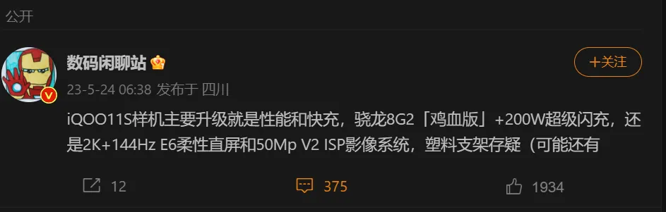 Il prossimo smartphone iQOO 11S dovrebbe portare notevoli miglioramenti rispetto al suo predecessore, l’iQOO 11, secondo le informazioni divulgate dal noto leaker Digital Chat Station su Weibo. Il dispositivo dovrebbe essere presentato a breve, principalmente per il mercato cinese, con un lancio globale previsto tra giugno e agosto di quest’anno.
