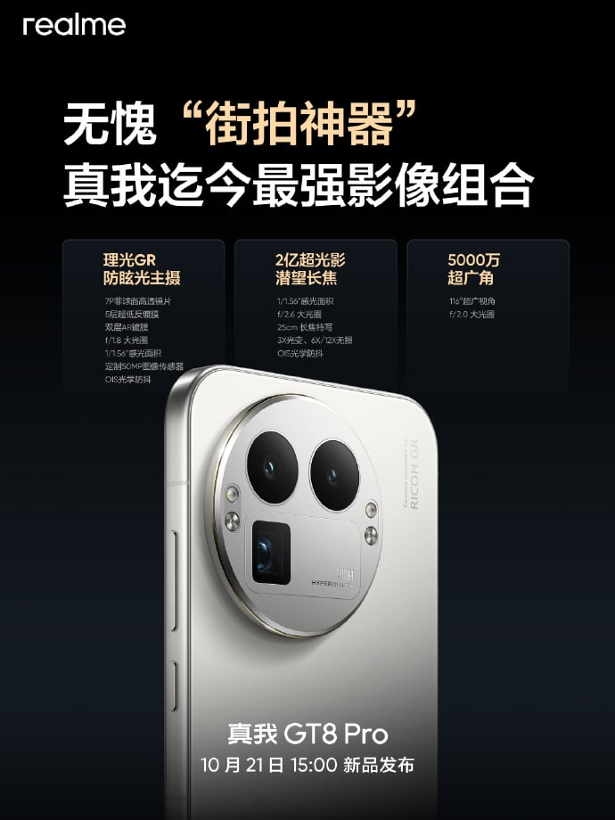 Realme ha confermato le specifiche complete della fotocamera del nuovo Realme GT 8 Pro, che sarà presentato il 21 ottobre come punta di diamante della serie.