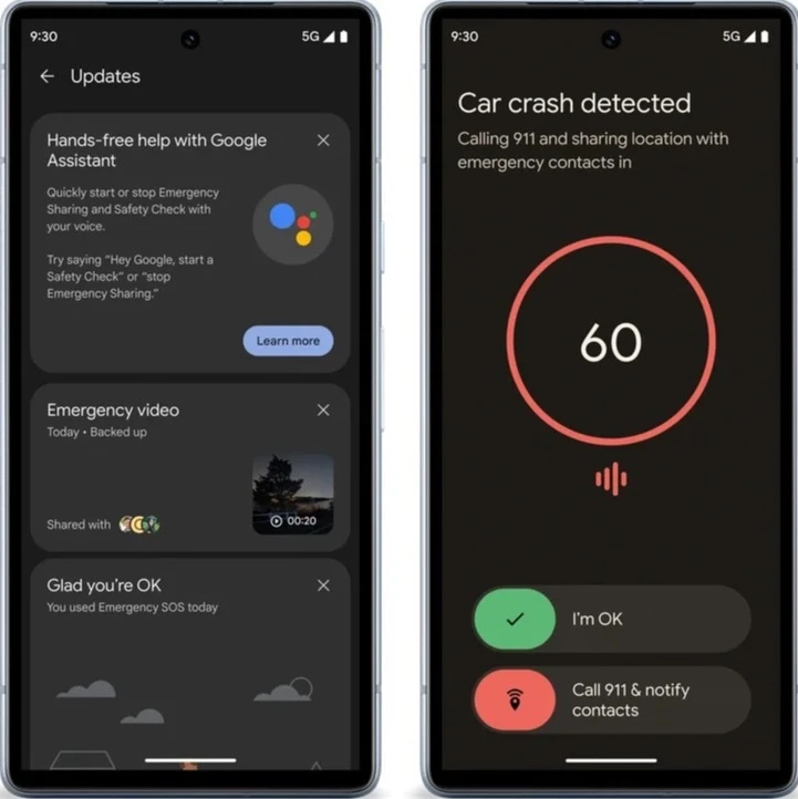 Iniziamo da una delle funzioni che vi auguriamo di non testare mai. Oltre al rilevamo di eventuali incidenti, ora l’assistente di google permette di avviare un “Safety Check” programmato, ossia la possibilità di ricevere una notifica dallo smartphone dopo un tot di tempo prefissato, per chiederti se è tutto ok. In caso di risposta negativa, chiamerà i contatti preposti, le forze dell’ordine, e condividerà la vostra posizione attuale o ultima rilevata.
