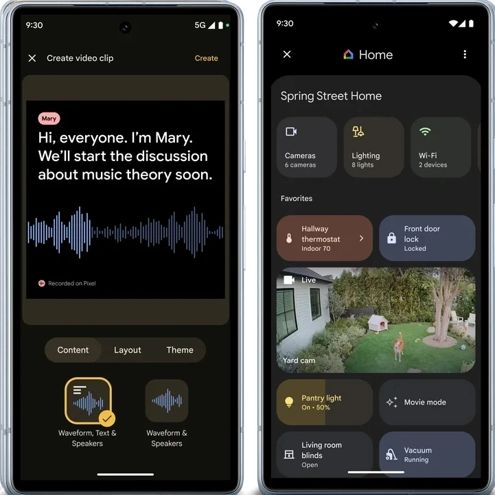 Gli amanti della produttività saranno molto contenti di sapere che ora l’app per registrare gli audio permette di trascriverlo ed esportarlo tramite Google Doc, creare video clip con tanto di etichetta su chi sta parlando e cercare registrazioni di una specifica persona. Di nuovo, questi aggiornamenti richiedono molta potenza, quindi saranno disponibili solo dal Pixel 6 in poi, al cui interno batte un cuore Tensor.