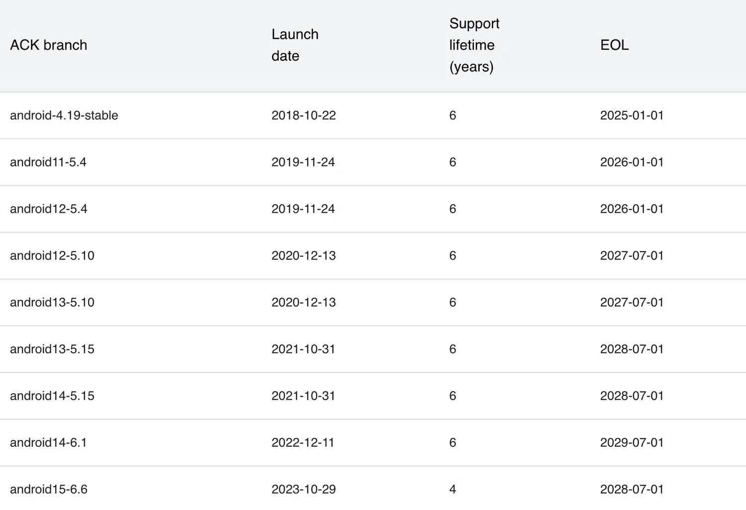 Inoltre, Google ha fornito date di fine vita per i kernel Android attualmente supportati, come il kernel Android 14 che sarà supportato fino al 2029. Con questa politica, Google richiede ora ai produttori di dispositivi che lanciano telefoni con Android 15 o superiore di utilizzare una delle due versioni di kernel più recenti, 6.1 o 6.6, per garantire che rientrino nella finestra di supporto.