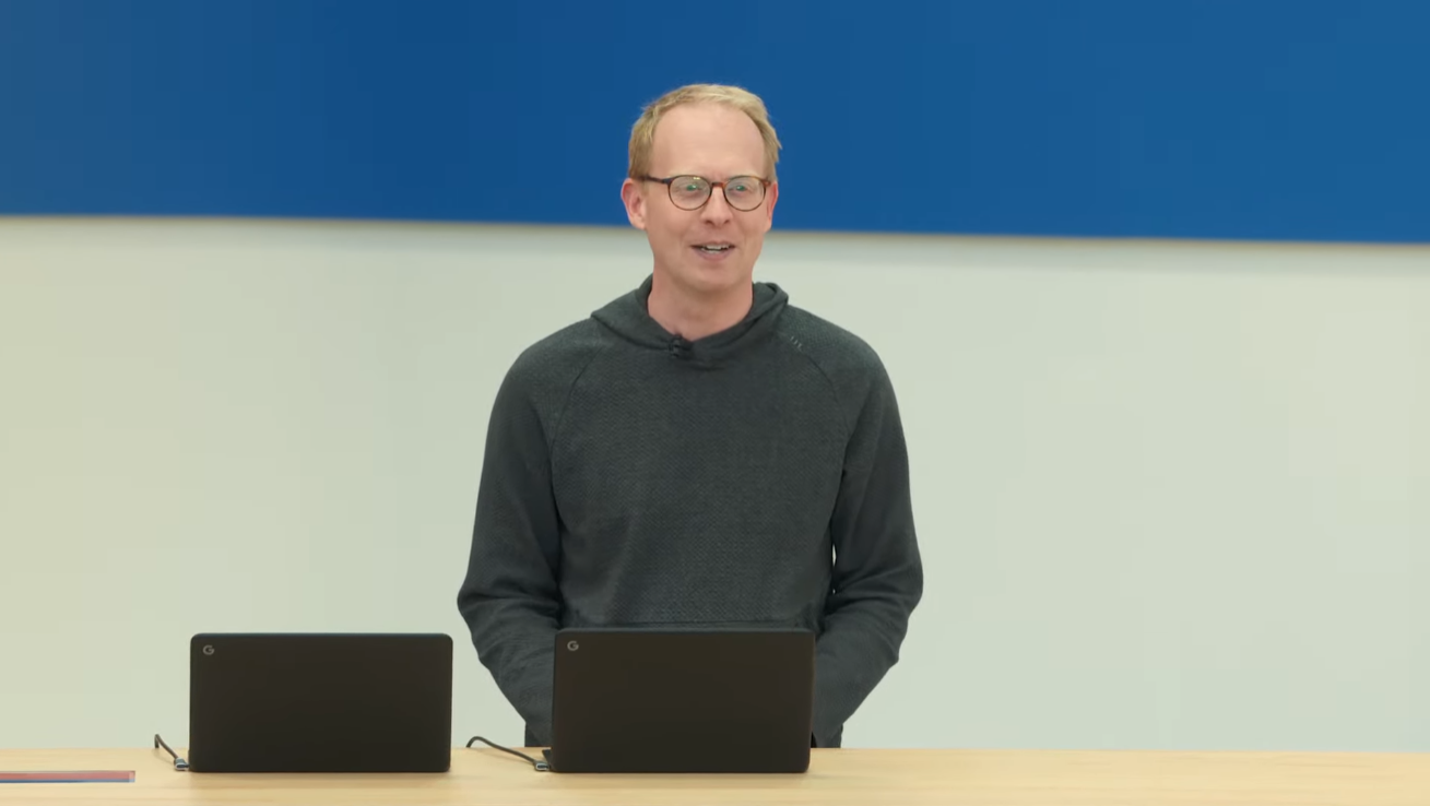 Dopo le immagini e la musica in questione, c’è stata una sorta di preshow nel quale il DJ e improvvisatore Mark Rebillet, uscendo da una tazza (avete letto bene), ha iniziato a urlare GOOGLE! GOOGLE! Ci ha ricordato molto i tempi di Steve Ballmer in cui gridava DEVELOPERS! DEVELOPERS!