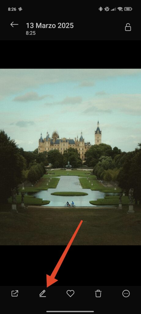 Anzitutto partiamo dalla galleria e scegliamo una foto da espandere. Nel nostro caso abbiamo scaricato dal web uno scatto che ritrae un castello in una bellissima radura piena di verde.