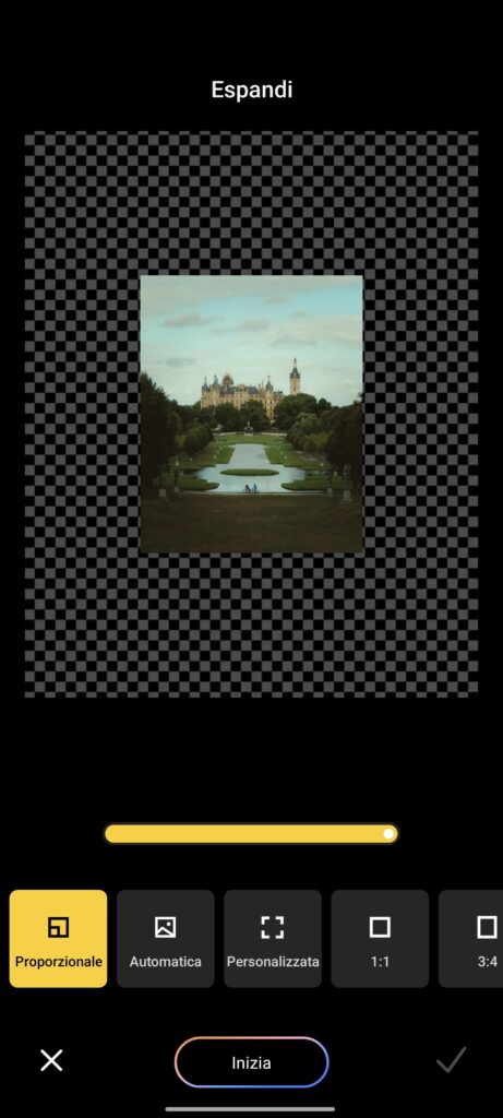 A questo punto non rimarrà altro che seguire l’interfaccia, che di per sé è molto intuitiva, ed aumentare a piacere lo slider di espansione che sta ad indicare di quanto vogliamo espandere la foto. Una volta soddisfatti, basterà dare conferma e dopo pochi secondi avremo a schermo il risultato finale.