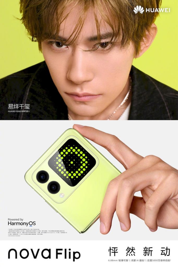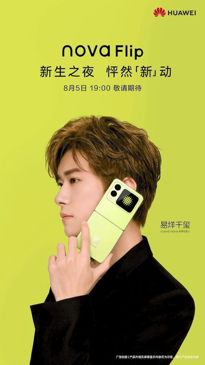Huawei si prepara a lanciare il nuovo smartphone pieghevole Huawei nova Flip il 5 agosto, con un evento trasmesso in diretta su bilibili e promosso da Jackson Yee dei TFBoys.