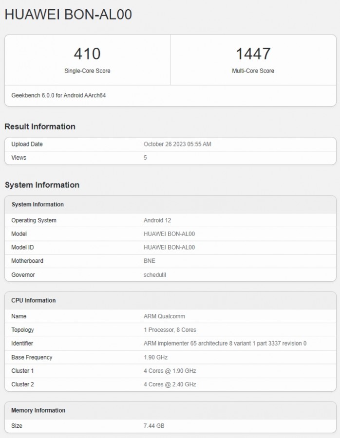 Nonostante Huawei non abbia ancora rivelato ufficialmente i dettagli, sappiamo che lo Huawei Nova 11 SE è alle porte grazie a delle immagini promozionali apparse su diversi rivenditori online ed in alcuni negozi fisici. Il dispositivo, che porta il numero di modello BON-AL00, è stato recentemente sottoposto a benchmark, mostrando una configurazione con Android 12 e 8 GB di RAM. Sebbene il SoC non sia stato svelato direttamente, le caratteristiche del processore octa-core (quattro core a 2.4 GHz e quattro a 1.9 GHz) suggeriscono che si tratti di un Snapdragon 680.