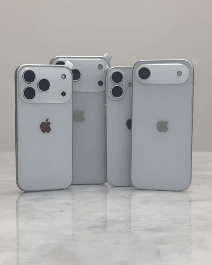 Anche il presunto iPhone 17 Air segue la stessa filosofia, seppur in versione semplificata: una camera bar più sottile, una sola lente posteriore e un’estetica che strizza l’occhio a un pubblico più esigente. Le foto circolate mostrano anche altri modelli della gamma in una colorazione chiara, rafforzando l’idea che non si tratti solo di prototipi sperimentali.