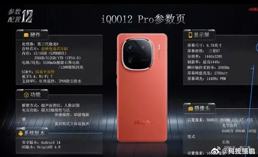 Passando alle specifiche tecniche della serie iQOO 12, emergono voci su un display OLED da 6.78 pollici con risoluzione 1.5K, refresh rate di 144Hz, luminosità di picco di 3000nits e PWM dimming a 2160Hz. Si prevede un’ampia gamma di configurazioni per RAM e storage, con opzioni che arrivano fino a 16GB LPDDR5 di RAM e 1TB di storage UFS 4.0.