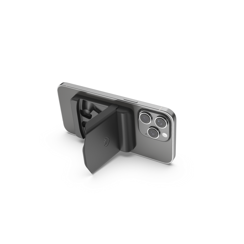 Un dettaglio interessante è la presenza di un piccolo kickstand integrato nella custodia, utile per trasformare lo smartphone in un mini display da tavolo, pensato ad esempio per chi guarda video durante una pausa, o per fare una videochiamata senza impegnare le mani.