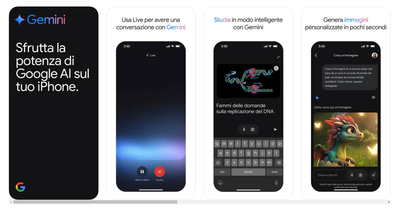 L’app Gemini per iPhone offre tutte le funzionalità già disponibili su Android, tra cui la generazione di immagini con Imagen 3, la possibilità di allegare foto alle richieste e l’integrazione con altri servizi Google come YouTube, Maps, Gmail e Calendar. Inoltre, l’app introduce su iOS la funzione Gemini Live, che consente di interagire con l’intelligenza artificiale in modo naturale, interrompendola per fare domande, inserire nuove informazioni o cambiare argomento.