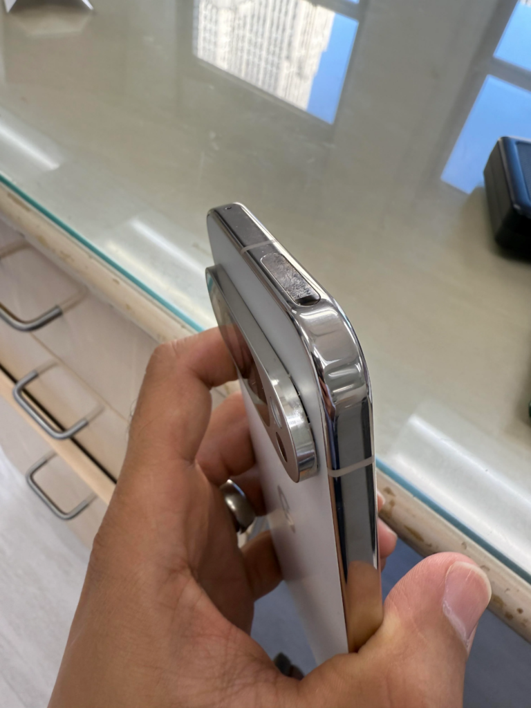 Dopo aver notato un appannamento delle lenti della fotocamera, l’utente ha scoperto con stupore che l’isola che le ospita si era parzialmente staccata dalla scocca posteriore del telefono. Nonostante l’utilizzo di una custodia protettiva e l’assenza di cadute o urti, la barra si è sollevata, compromettendo la resistenza all’acqua del dispositivo.
