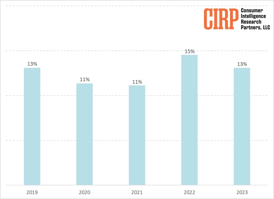 Un recente studio pubblicato da Consumer Intelligence Research Partners ha rivelato che nel 2023 il 13% degli acquirenti di iPhone proveniva da Android, segnando un calo rispetto al 15% dell’anno precedente, ma mantenendosi comunque in linea con il trend degli ultimi cinque anni, che vede una costante transizione di utenti Android verso iOS nell’intervallo dell’11-15%.