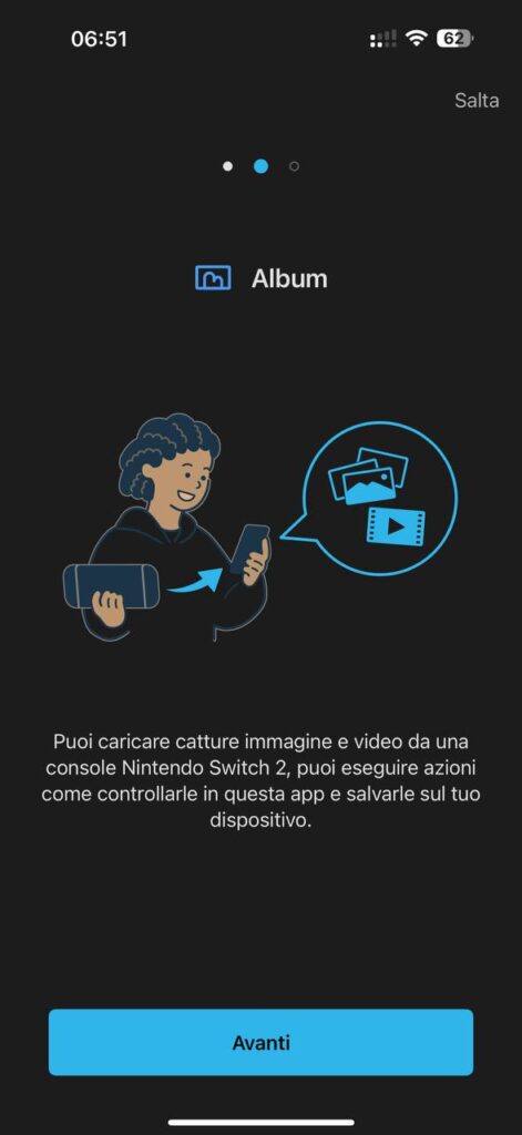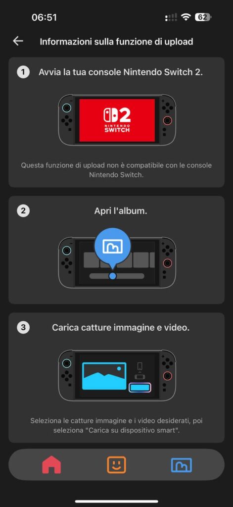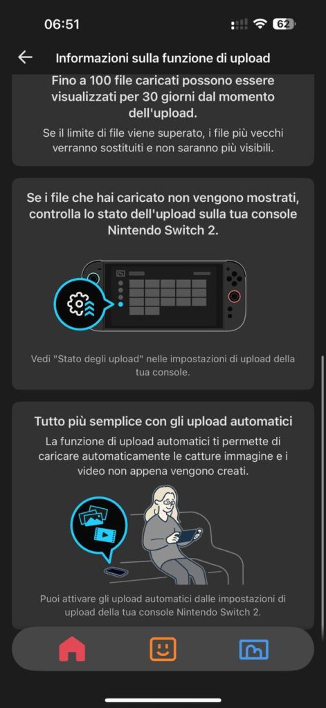 Tra le novità più apprezzate c’è sicuramente il supporto completo all’upload automatico di immagini e video catturati su Nintendo Switch 2. Basta scattare uno screenshot o registrare una clip dalla console, e la si troverà in automatico sull’app dello smartphone.