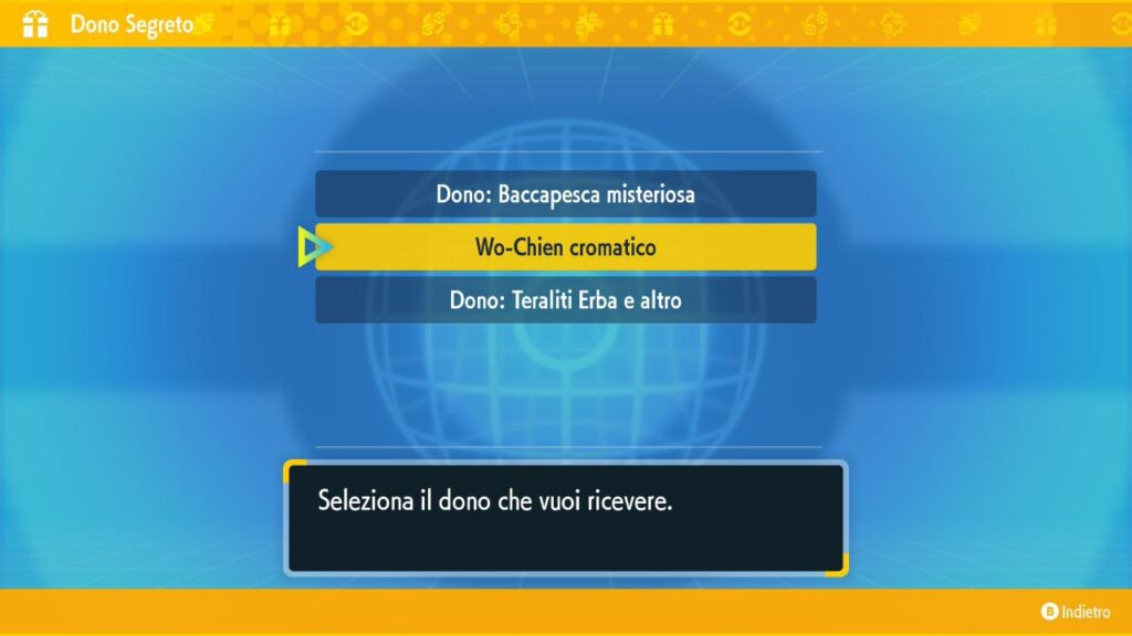 Per riscattare il proprio Wo-Chien shiny, i giocatori devono avviare uno dei due titoli e accedere al portale dal menu X. Successivamente, è necessario selezionare “Dono segreto”, scegliere “Via Internet” per connettersi online e infine selezionare il regalo.