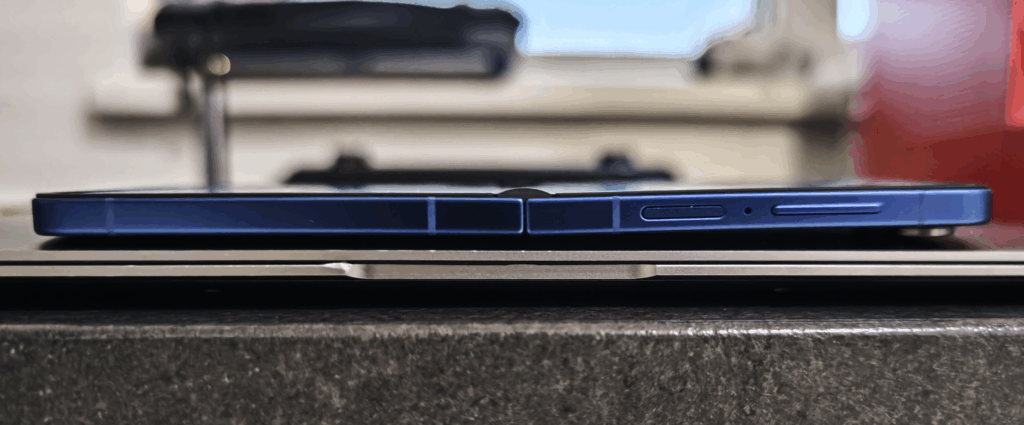 Un altro aspetto da tenere a mente è la gestione del calore. Come già detto, il Flip 7 tende a scaldare durante l’uso prolungato o in ambienti caldi. Non si arriva mai a livelli preoccupanti, ma è qualcosa che si sente. È un limite dovuto alle dimensioni e allo spessore ridotto del dispositivo, certo, ma rimane un fatto. A questo si aggiunge il lettore di impronte laterale: per chi è abituato a FaceID o al sensore sotto lo schermo, risulta quasi innaturale. Si cerca il sensore dove non c’è, e il posizionamento piuttosto alto del tasto power lo rende anche un po’ scomodo da raggiungere.