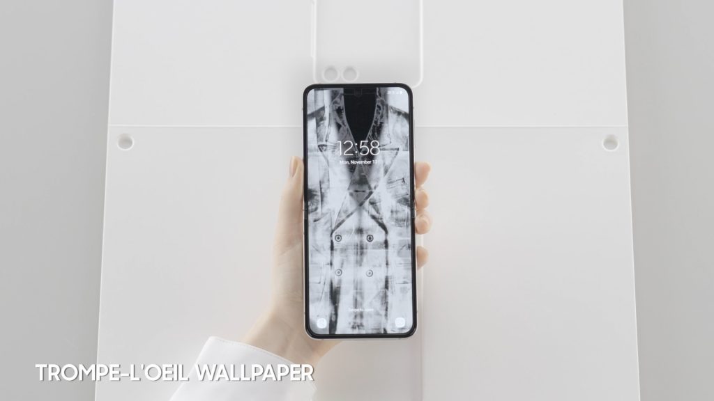 Inoltre, il dispositivo è arricchito da un tema speciale e da due sfondi unici, “Stitches” e “Trompe-L’oeil”, che raffigurano rispettivamente dettagli di cuciture a mano e l’interno di una giacca.