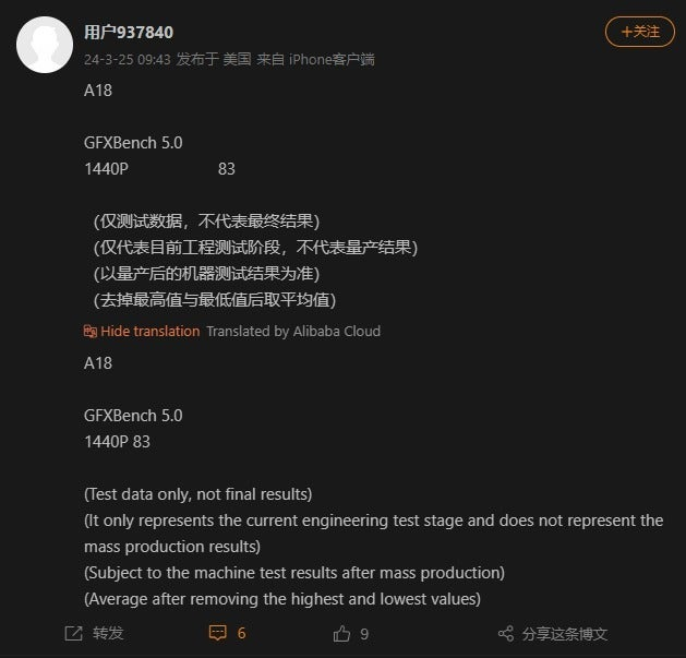 Facendo la dovuta premessa che questo genere di informazioni vanno sempre prese con il dovuto scetticismo, pare siano spuntati in rete i primi benchmark di GPU e CPU dell’Apple A18, processore che verrà montato sugli iPhone 16 Pro.