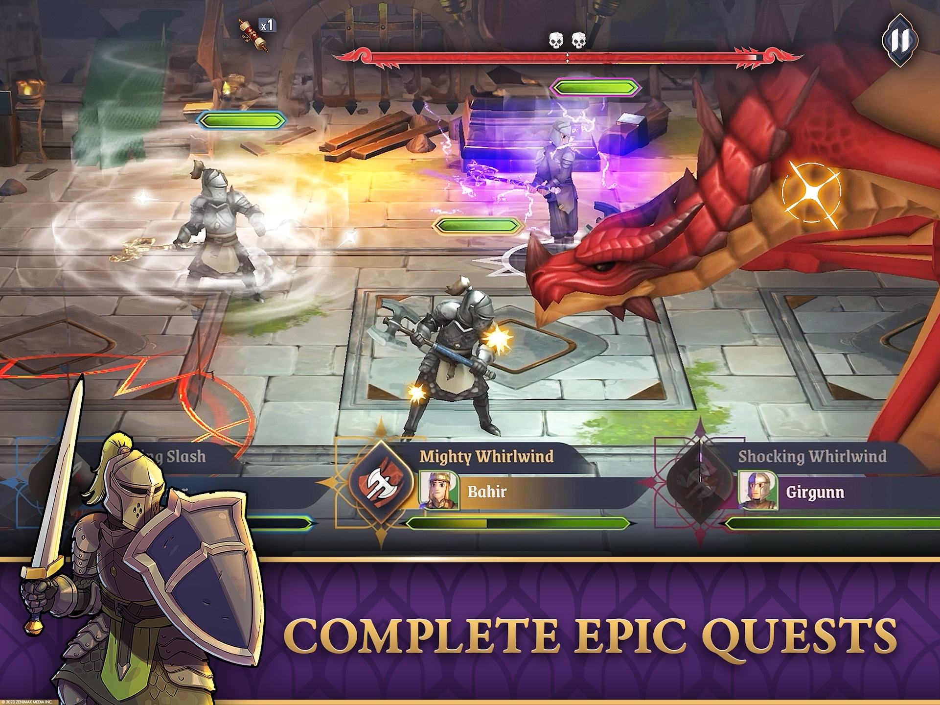 Nonostante le somiglianze con Fallout Shelter del 2015, in cui i giocatori costruivano e gestivano un rifugio post-apocalittico, The Elder Scrolls: Castles introduce anche elementi di quest epiche, come mostrato in uno screenshot che raffigura un gruppo di personaggi che combattono un imponente drago rosso.
