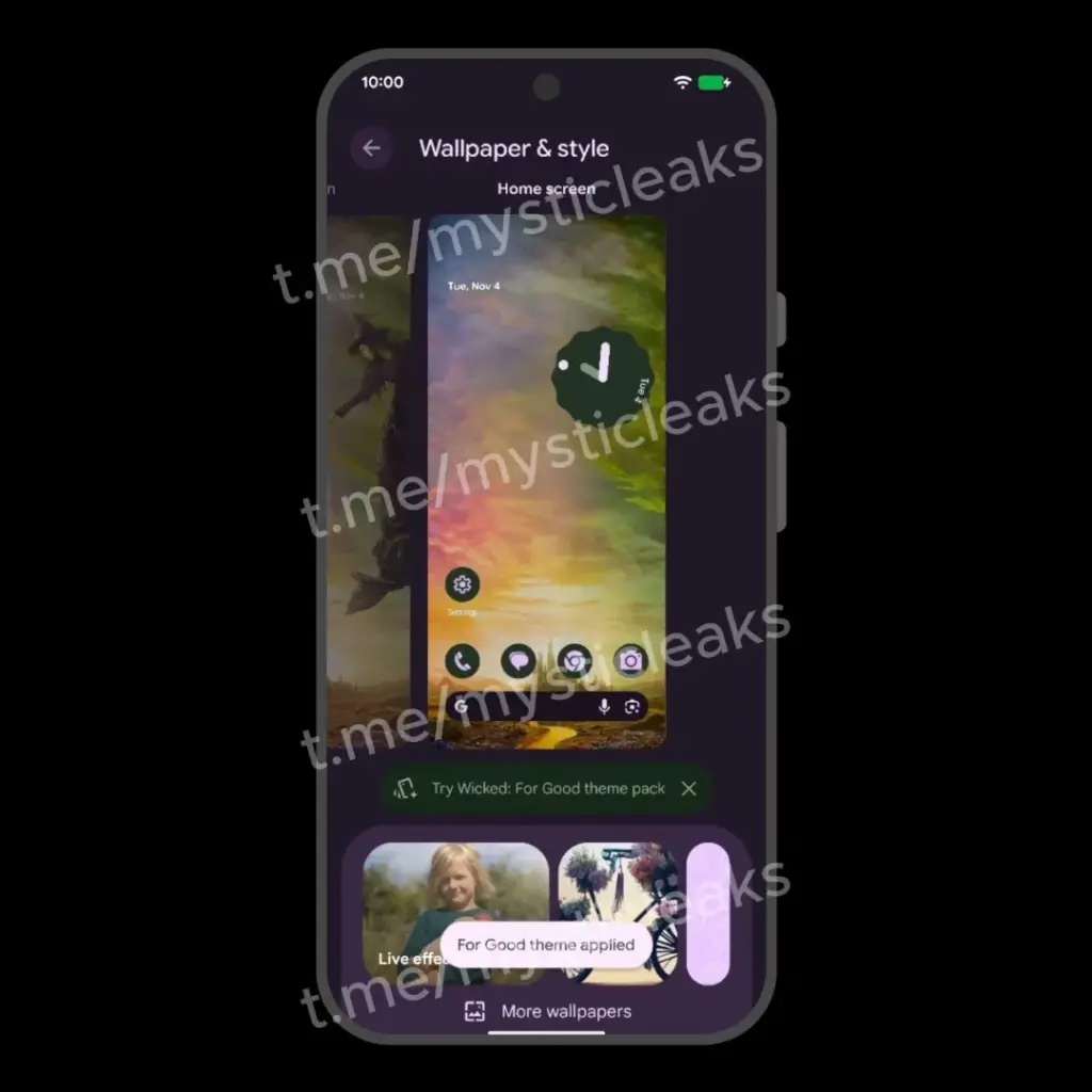 Tra le più attese ci sono i “theme packs”, nuovi pacchetti grafici che permetteranno di cambiare con un solo tocco lo stile del telefono, dagli sfondi alle icone fino ai suoni e alle GIF animate. La prima collezione, chiamata Wicked: For Good, includerà temi ispirati a Glinda ed Elphaba, con un’estetica vivace e coordinata.