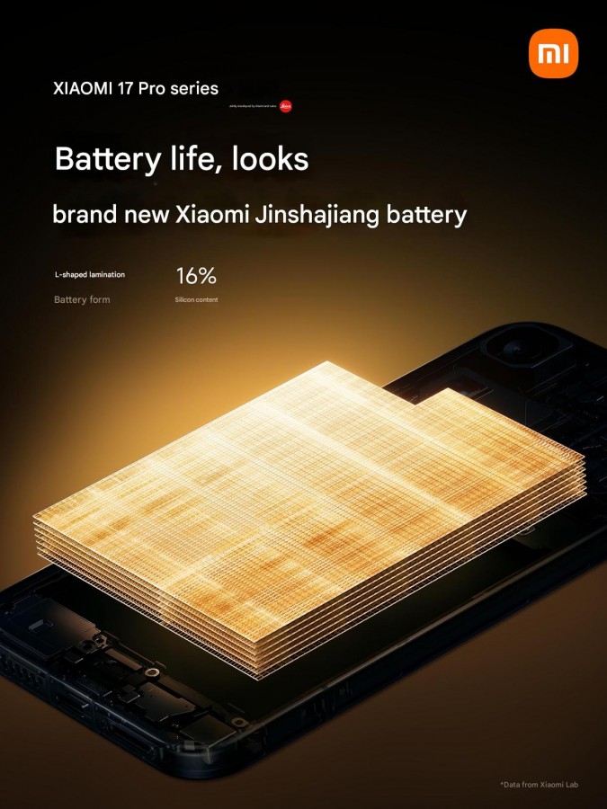 Le versioni Pro saranno dotate della nuova batteria Jinshajiang, basata su un design stack a forma di L con contenuto di silicio del 16%, che permette la ricarica cablata fino a 100W.