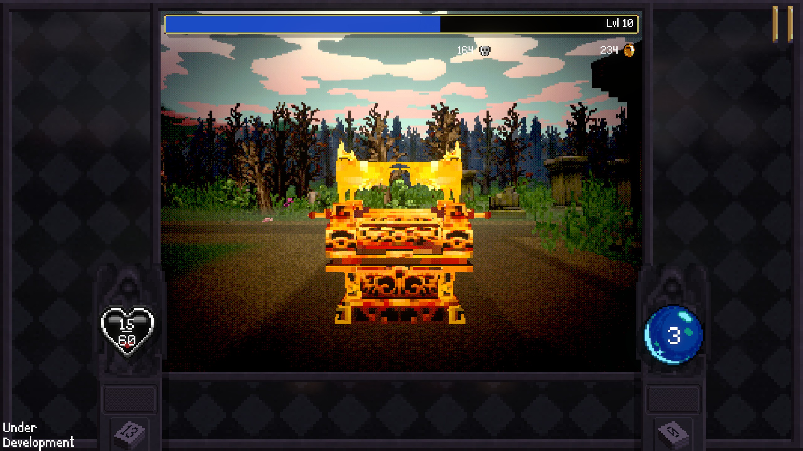 Dal punto di vista estetico, l’ultima fatica di Poncle riprende in modo intelligente la grafica ricercatamente basilare che ha reso celebre il primo capitolo. Gli sprite bidimensionali e i menu dal sapore retrò nascondono in realtà un motore capace di gestire un caos controllato fatto di decine di esplosioni, proiettili e nemici a schermo. Questo stile visivo minimale non è un difetto, ma una scelta stilistica precisa che garantisce una fluidità perfetta anche nelle situazioni più affollate, ed evita che il tripudio di effetti speciali comprometta la leggibilità dell’azione di gioco.