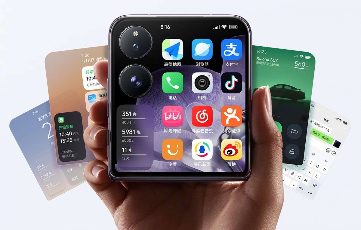 Il Mix Flip si distingue per il suo schermo esterno da 4,01 pollici, il più grande della categoria, pari a quello del Motorola Razr+ 2024. Xiaomi chiama questo display “All Around Liquid” e offre un rapporto 16:9 che permette di eseguire app complete o di posizionare widget.